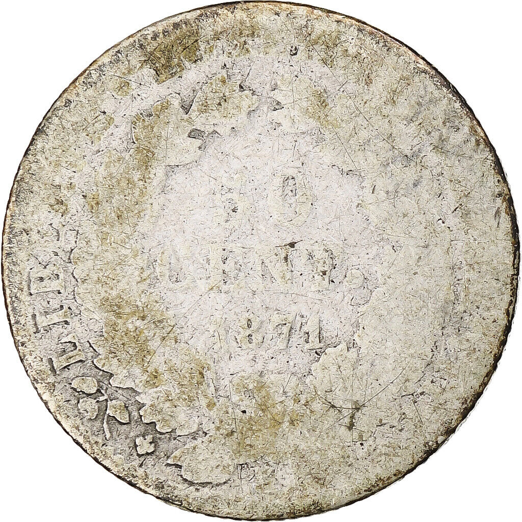 Crafted from durable metals such as copper or bronze, the 1871 50 Centimes coin would have been widely circulated throughout France, used in daily transactions by people from all walks of life.